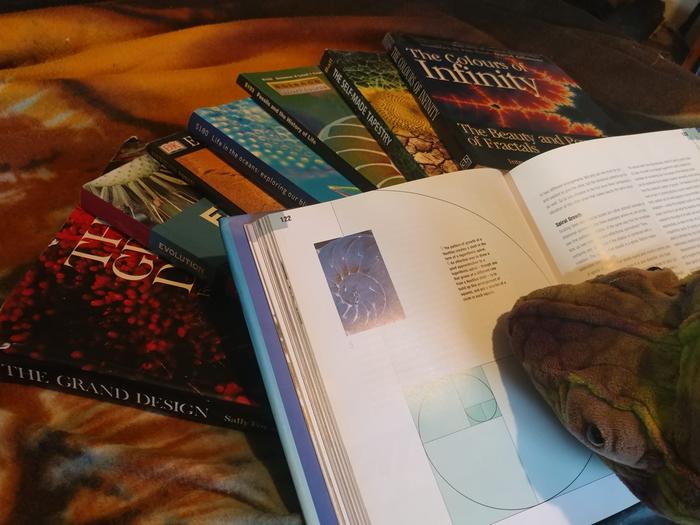 "I've been reading that story book Austin lent me. And there's a story in it about Tibetan monks to try to write out all the names of God. Maybe it's like that. When he's been through all the possible combinations it's time for the eggs to hatch and ammonites to live again!"