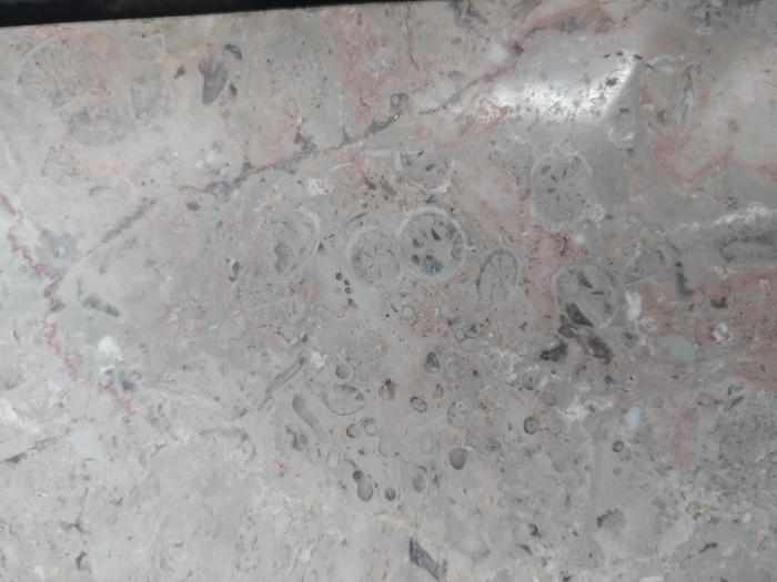This one has some very pretty pink bits, AND fossils! The photo doesn't do it justice though...