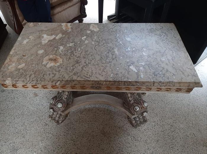 I'd sort of promised I'd stop collecting them, but as we're still renovating the house and need a few more bits of furniture for it, I'm always looking out for suitable pieces that just happen to have pretty stone tops. Or sometimes just the tops themselves so that I can quietly sneak them onto to normal cupboard tops in the hope that they don't take up any extra room and I don't upset anyone by making the place even more cluttered