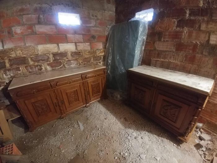 This one was for sale locally, for just €5, including a lovely little sideboard that fits nicely next to the washbasin. It has a convenient shelf for storing boxes of home-made soaps and a little drawer where I keep seed-saving bags. Because not much is normal in my house and it seemed a good place to put them. And just look at the fossils in the stone top!