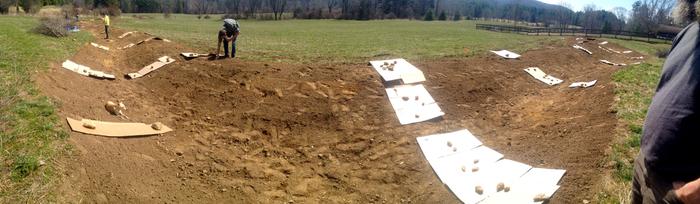 Dan Grubbs wrote:If you look at the swale/berm I cut yesterday on our farm, you'll see about a 300-foot swale that is about 18 inches deep, four feet wide and a burm of about two feet in height. Today I covered the berm with a thick coat of hay to keep the rain from washing it away before I get things planted on it. So, obviously, I'm asking for planting suggestions. I will be ordering a variety of nut trees to plant, too.