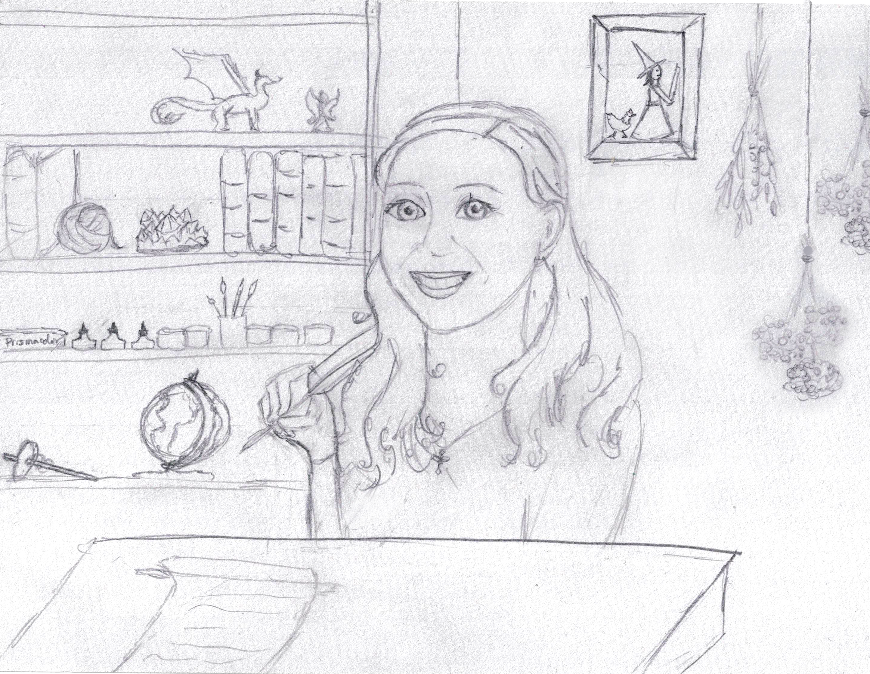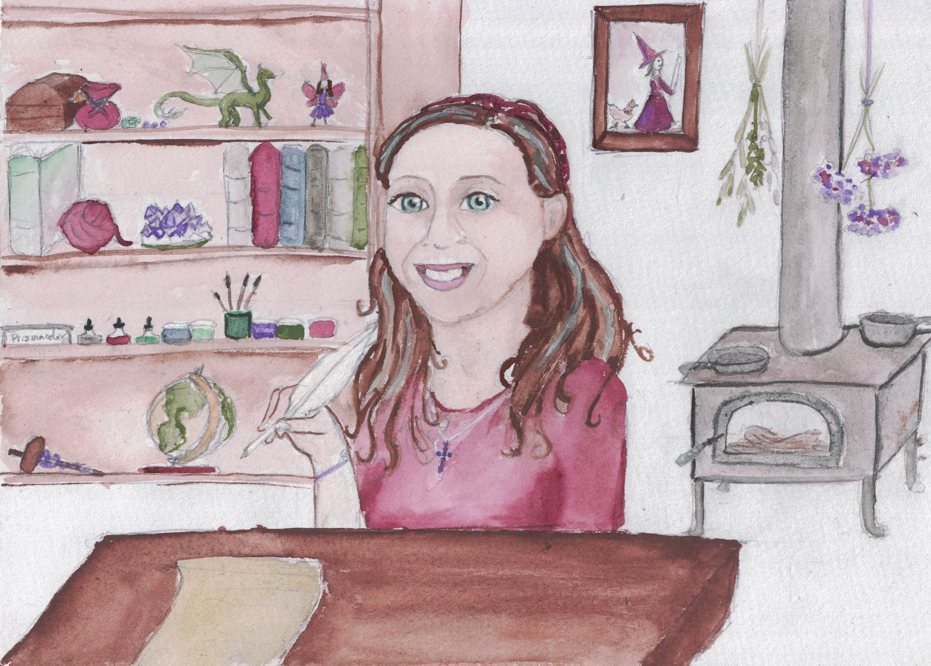 Nicole Alderman wrote:I tossed caution to the wind, pulled out my hand-made watercolors, and painted my caricature! I really enjoyed painting my shirt (and other details) with the cochineal lake paint I made. It's so pretty!