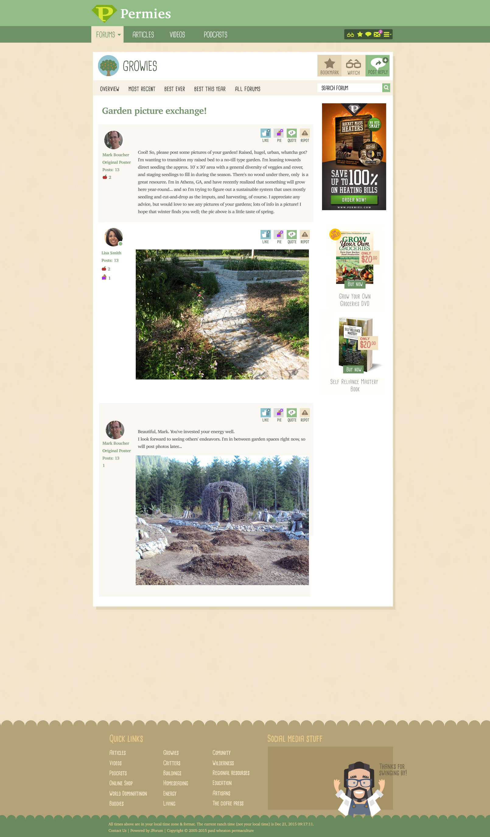 Soooo....Please!!!...I call out to the omnipotent, site tinkering gods and goddesses of permies design, grand pooba-nesses proviers of divine grace and mercy......so I don't fell dejected, sent down to the X-Files and left to consider taking my ball and going somewhere else. I'd really prefer to stay here and play well with others.