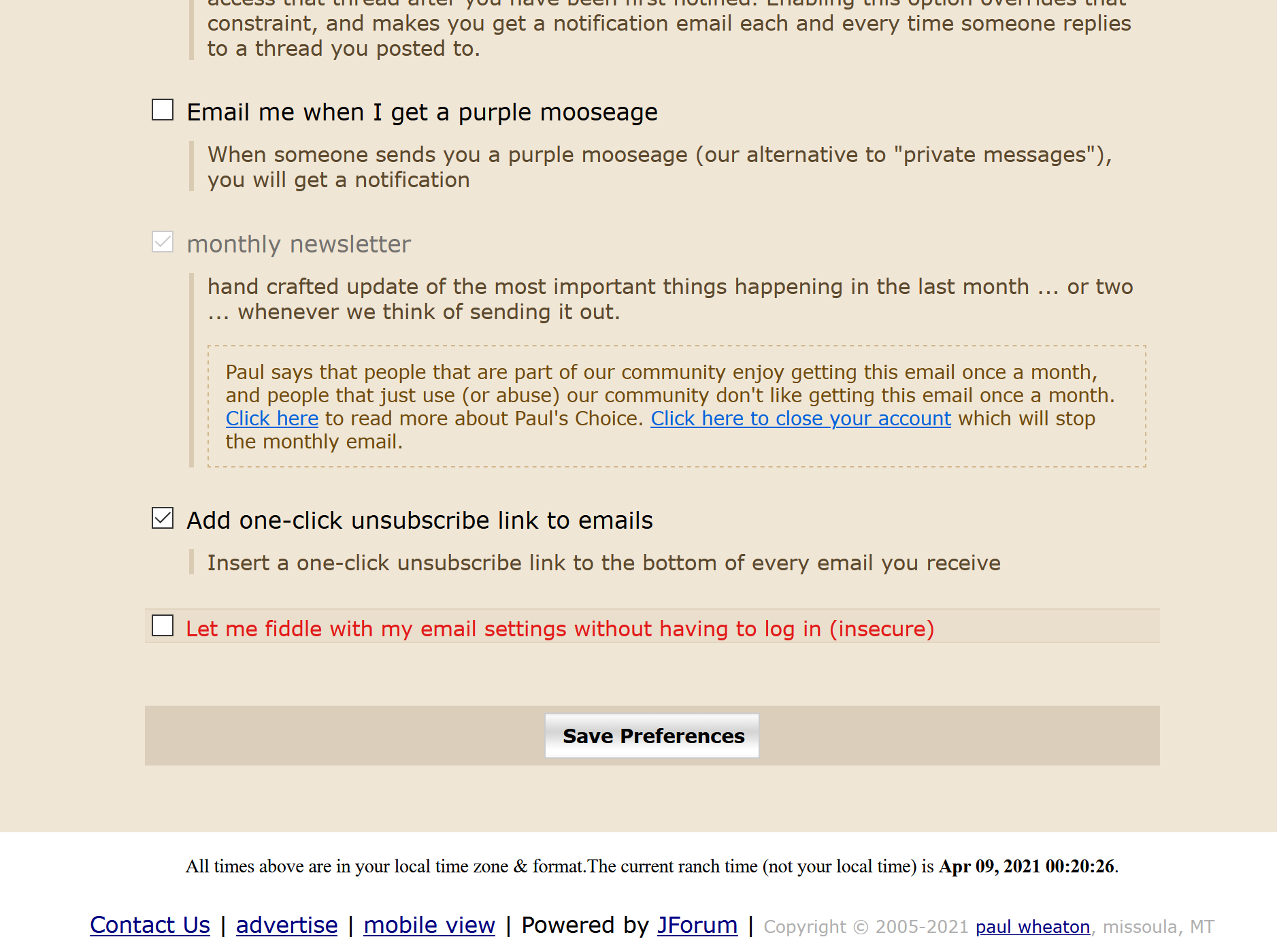 I'm sick of your email updates without the actual button as a communicatoin preference...