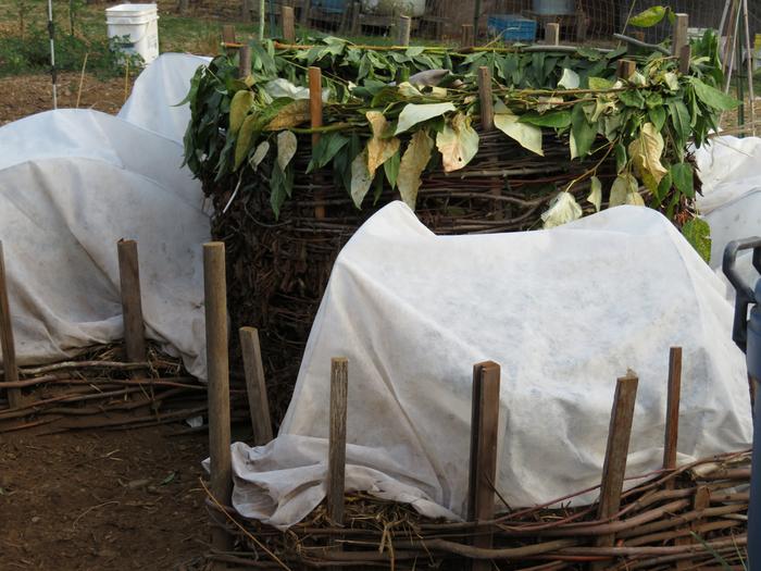 You could weave an arch around a disk of firewood that sort of acts as a plug/door that just gets pulled out of the arch or placed in the arch. If it rots, get a new one.oh... now that's an idea. I wonder how I can incorporate that into the next garden. It would be pretty easy if I used an old plastic compost bin, but natural materials? Not sure. Something to think about.