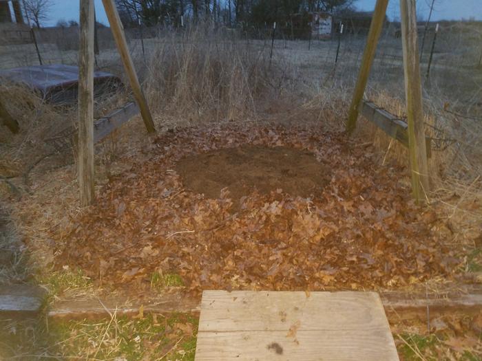 T Melville wrote:My younger son asked if he could borrow our truck for work. They were moving leaves, and the truck would save a lot of effort. Of course I told him he could, and by the way, what were they doing with the leaves? So I ended up with a truck load of tightly packed dry leaves, mostly oak. Turned out they were packed too tight for my blower / shredder / vac to pull 'em loose. Also, there was lots of gravel in them. My harbor freight shredder didn't think that was cool. So I made a new plan.