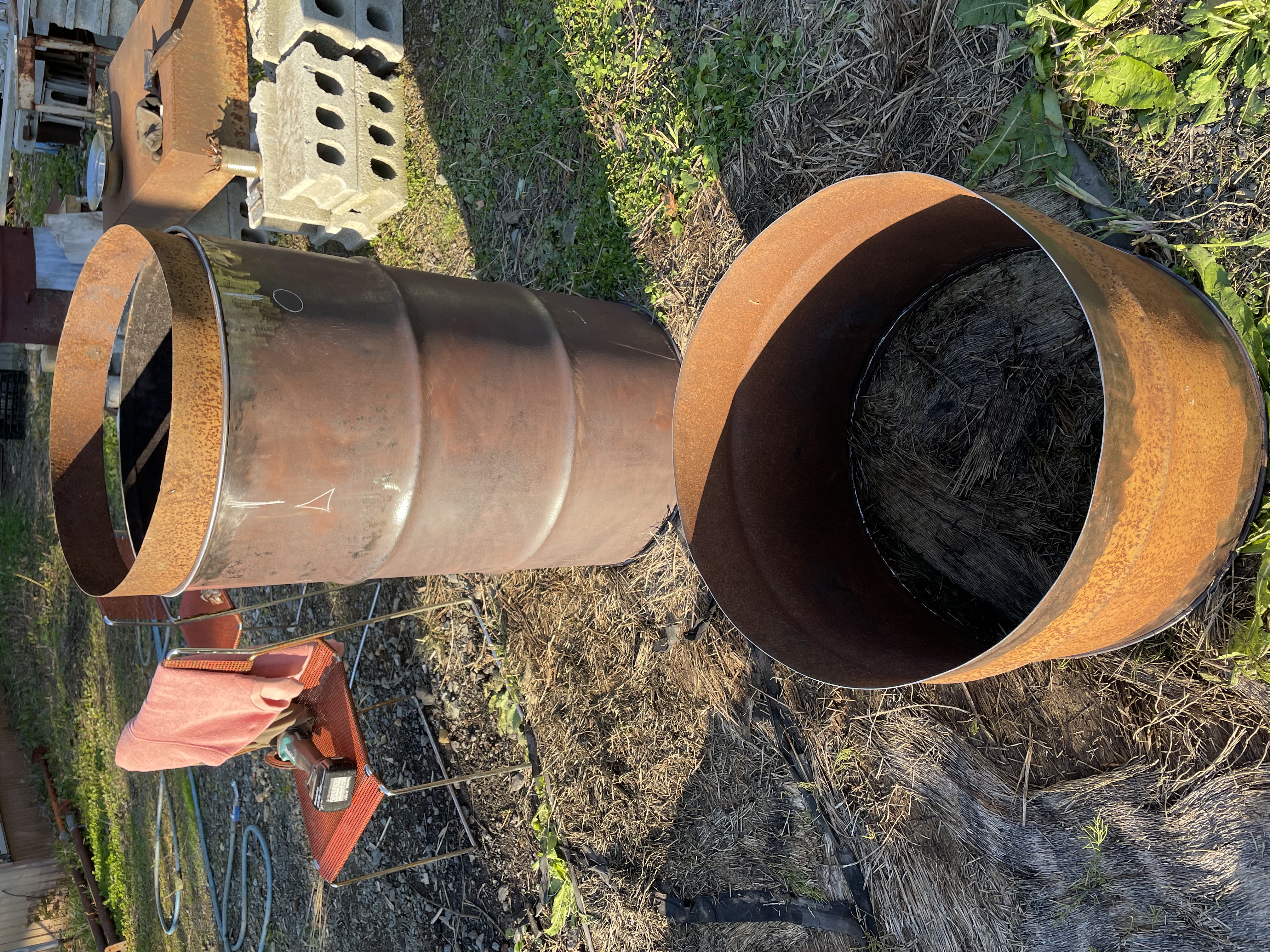 Two barrels can be easily joined with the clamp used to keep a removable lid on a barrel.