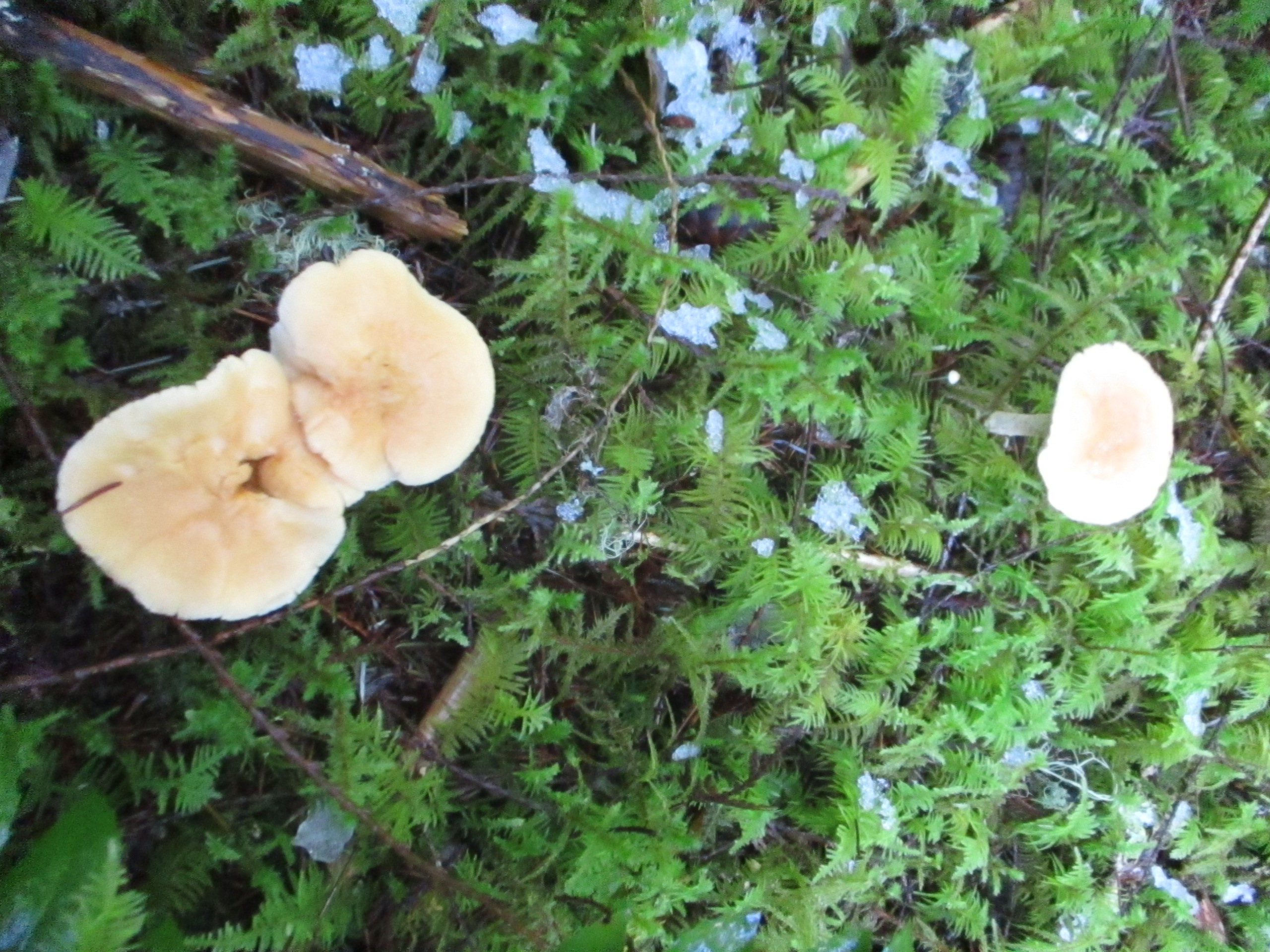 Here's some photos of some Oregon Bellybutton Hedgehog (Hydnum oregonense) mushrooms I harvested on a recent foray. They are sometimes abundant from December-February in western Oregon in older, wet forests under Evergreen Huckleberry, Western Red Cedar, Western Hemlock and Douglas-fir. They are almost always found near Yellow-Foot Chanterelles, another choice edible.