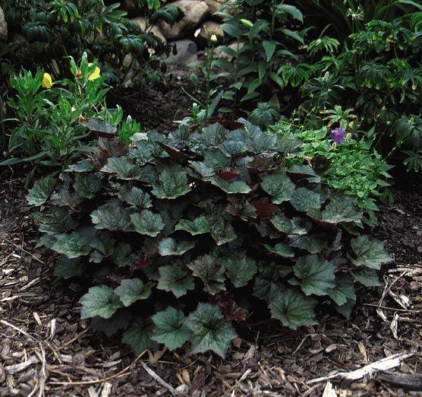 It is sort of like heuchera / coral bells but the petiole seems thicker and longer than the plants I see on Google.