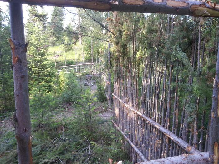 Victor Johanson wrote:Interesting--reminiscent of traditional Scandinavian roundpole fences, about which I just learned. They're called gärdesgård in Sweden, and are built from spruce poles, peeled or unpeeled. The posts consist of a pair of sharpened poles that are charred to inhibit decay; they're only driven a little way into the ground, the weight of the fence keeping it all in place. One cool thing about them is that the traditional method requires no fasteners--the poles are held up by green fir or juniper boughs that are twisted and wrapped around the post pairs. Apparently they've been used for hundreds of years over there, and they can also be very attractive. Check it out: