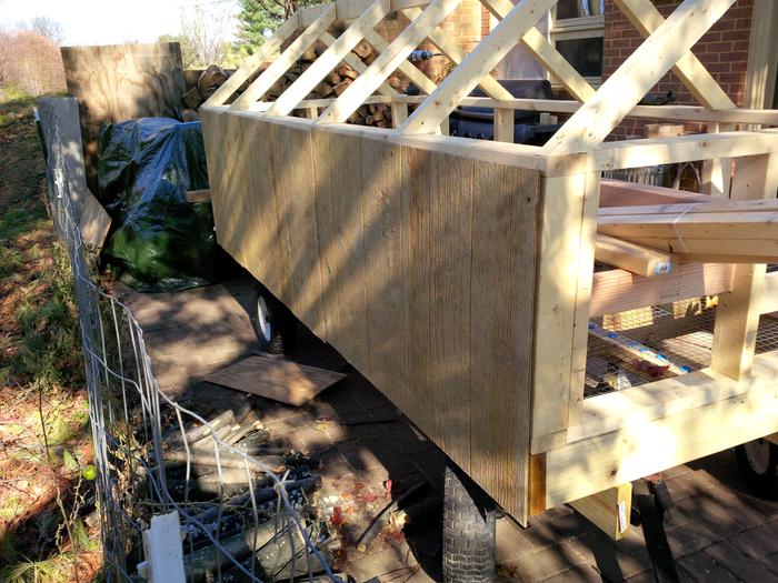 I didn't give any detail to this feature, we will call it a recovery door. I have framed one of the side panels and cut and installed it ever so that it will come out with two screws. Turns out I have taken this off and placed hardware cloth in its place during the summer for more ventilation. I will turn this into a permanent door / full window.