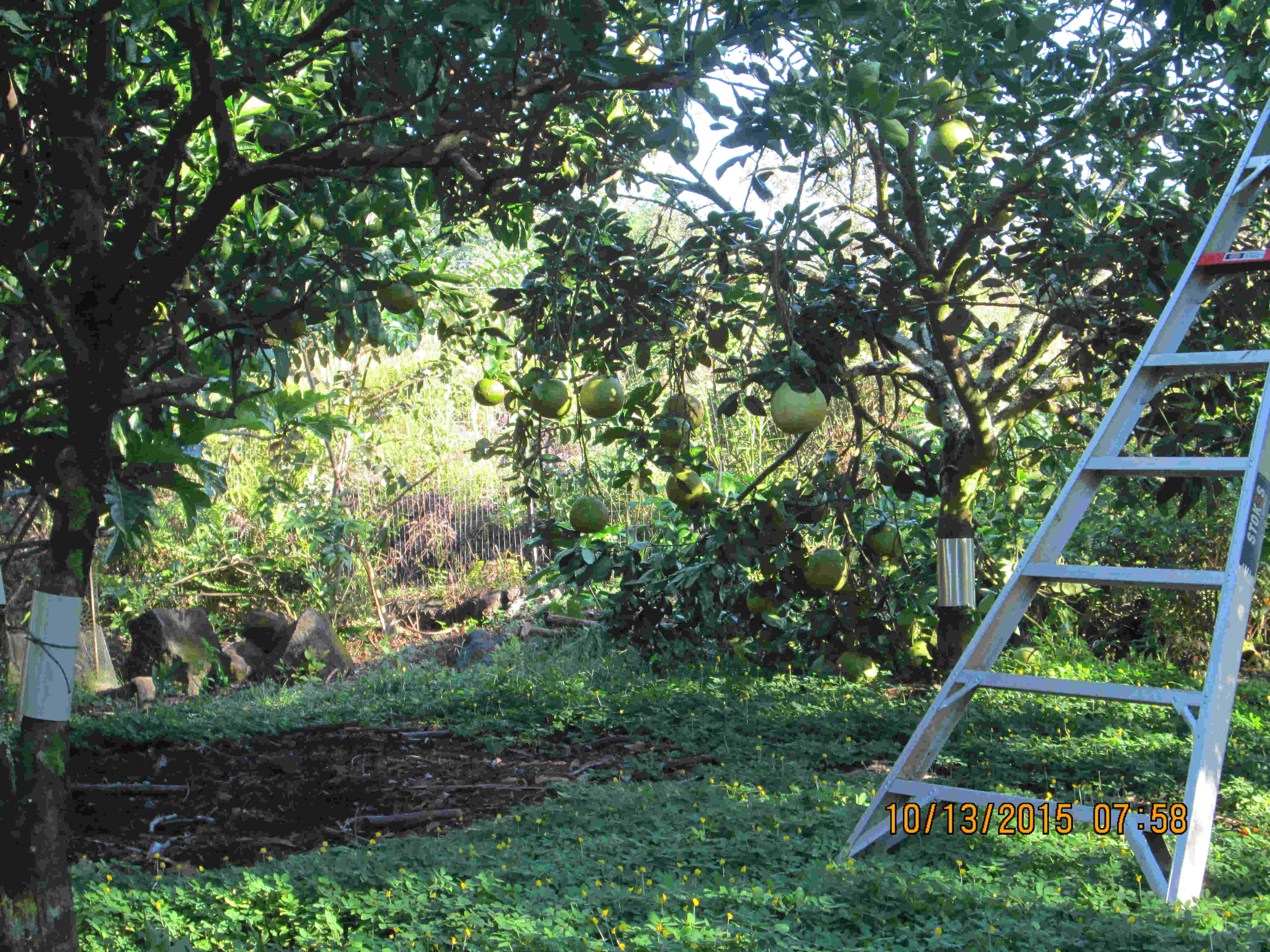 FRUIT and NUTS: Over 20 named varieties of producing 10 year old fruit trees. Many dwarf coconuts, a macadamia nut and a cashew. Many bananas (dwarf varieties), many pineapples, several papayas. Citrus: orange, pommelo (similar to grapefruit), tangerine, lemon and lime. Tropicals: longan, lychee, rambutan, eggfruit, mango, abiu, starfruit, tamarind, breadfruit, mountain apple, jaboticaba, moringa, and peach palms. 4 named varieties of avocado. Not producing yet: mangosteen and marang.
