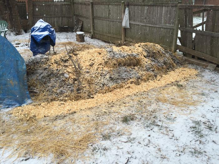 You're right, Patrick. The soil was totally frozen. A hoop structure may be the way to go. There is a small amount of pine shavings on top from what was left in the bag. I thought, "What could it hurt?" I can sweep it off though.