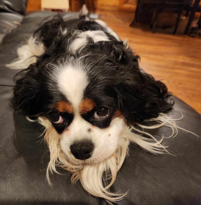 My ridiculously sweet Cavalier, Charlie, the little girl the cockerel was (literally) dying to attack