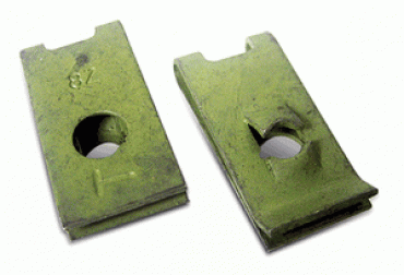 they look like tablecloth clips. They clip on the edge of the table to keep the tablecloths from blowing off. Usually made generically for picnic tables, but sometimes they were made to go with specific tables.
