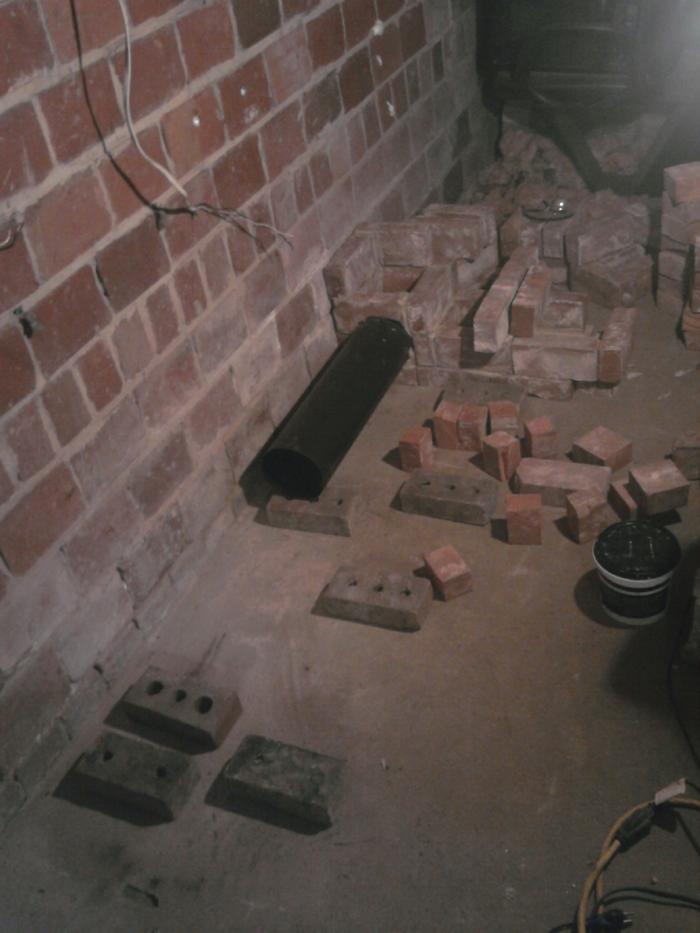 For my exhaust, I spent alot of time cuttin and shaping my brick around my exhaust so it would take less mud (refractory cement)(Ace Hardware carries it) to seal it off on the inside. I"ll use High Temp Caulk to seal it from the outside.