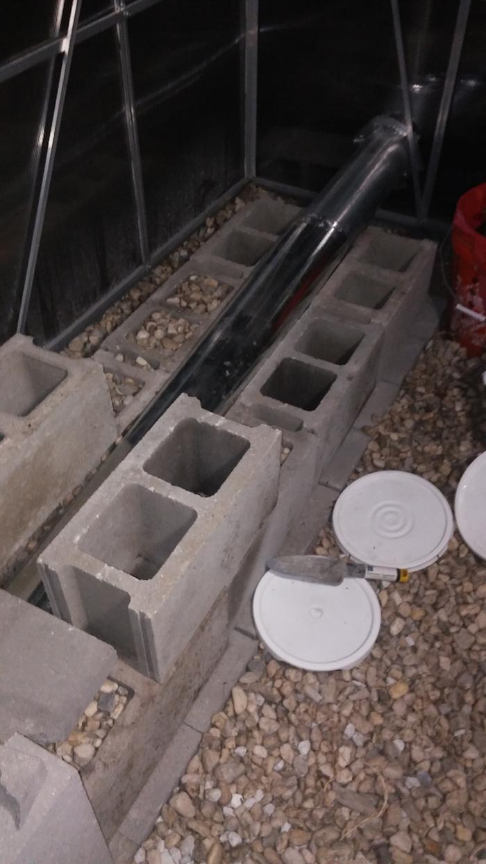 Think of your 'mass' as something solid. Rocks and Cinderblocks are solid, as are the grains of sand, but the air between them is not solid, so the air is not mass (although gasses have 'mass' too, but not for this purpose, since the gas particles are not solid, they are gasses). The gaseous space between the solids act to insulate (or isolate) the structure of the solids from each other, and so you are right in thinking that this will interrupt the conduction and transfer of heat. The further you can accommodate the solids being both in contact with each other and in contact with your exhaust gases, the more efficient the transfer of heat from the rocketted gasses to your mass, and the more heat you gain overall in your building. Filling with sand will increase efficiency, when compared to having larger spaces around larger stones. Sand is not terrible as a mass, but it does have some insulative qualities due to the air spaces around the sand particles. It's not a bad choice, considering you do not want to use cob. People use cob since all that air space is taken up by a substance that is both dense and malleable.I have cinder blocks that I was planning on filling in with rock, and stuffing rock around the exhaust pipe (6"), but is that sufficient? Will the air space between the rocks interrupt the conduction and transference of the heat, into the surrounding materials and then to the greenhouse? Would filling in with sand in addition to the rocks increase efficiency?