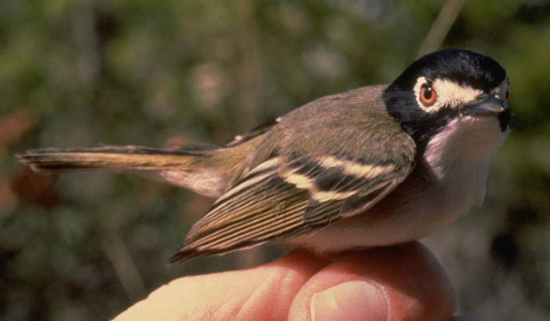 This vireo was listed as endangered in 1987. The principal threats are cowbird parasitism, destruction and modification of nesting habitat, and possible conversion of wintering habitat. Yhe low growing woody cover they need for nesting has been cleared or overgrazed by livestock and deer. Another problem is that the vireo eggs take an unfortunately long time to hatch; cowbird eggs, laid in the same nests, usually hatch first, so that the vireos raise only young cowbirds or abandon the nests. Without some kind of control of cowbird numbers, the vireo may face extinction. Thus, cowbird removal will likely be a requisite of management schemes at most sites in Oklahoma and Texas. This requires extensive efforts in trapping cowbirds, or removing cowbird eggs.
