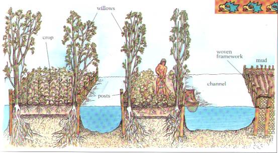 Not deterred by the unfavourable terrain, they set about building their city, using the chinampa system (misnamed as "floating gardens") for agriculture and to dry and expand the island.
