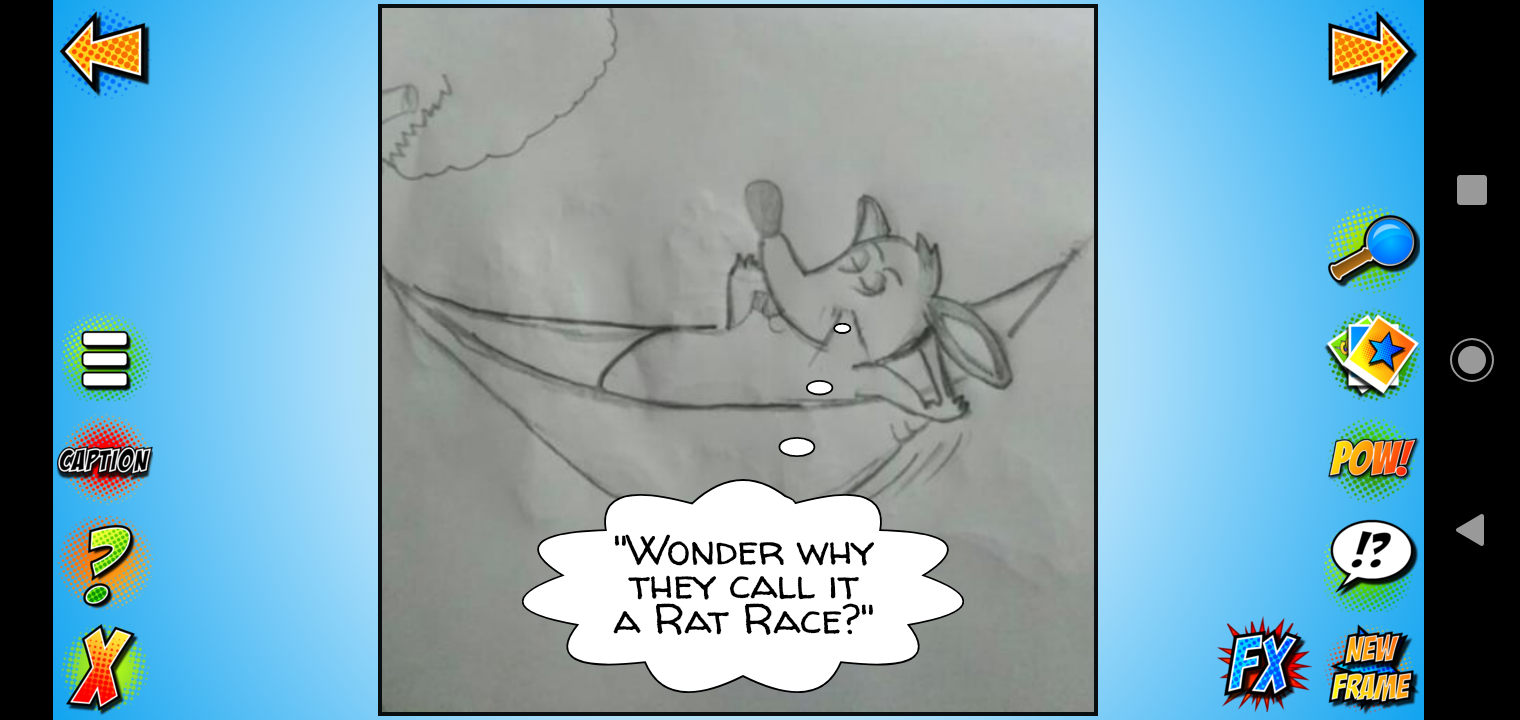 I had my wife draw the cartoon below. I think my words need to go in a little caption thing or maybe it's called a word bubble to show what the rat is thinking.