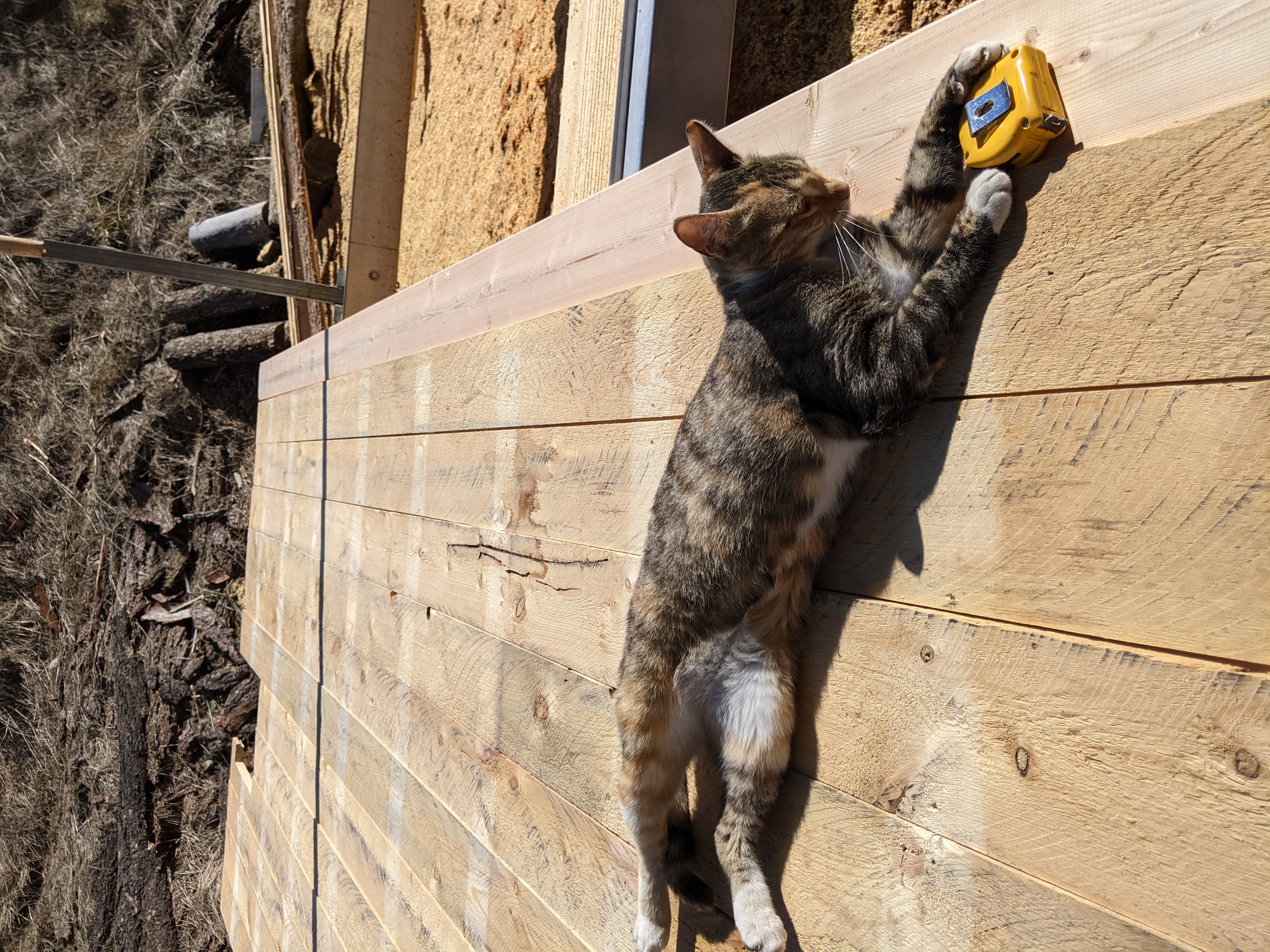 Then the new 2x6 got sliced down to 1x6. After that, we lined up all the boards roughly in their order of install and figured out the lapping order. Set up the router and got them all lapped. Lyra checked in on us a few times to ensure we were doing it well. She seemed to be satisfied. π