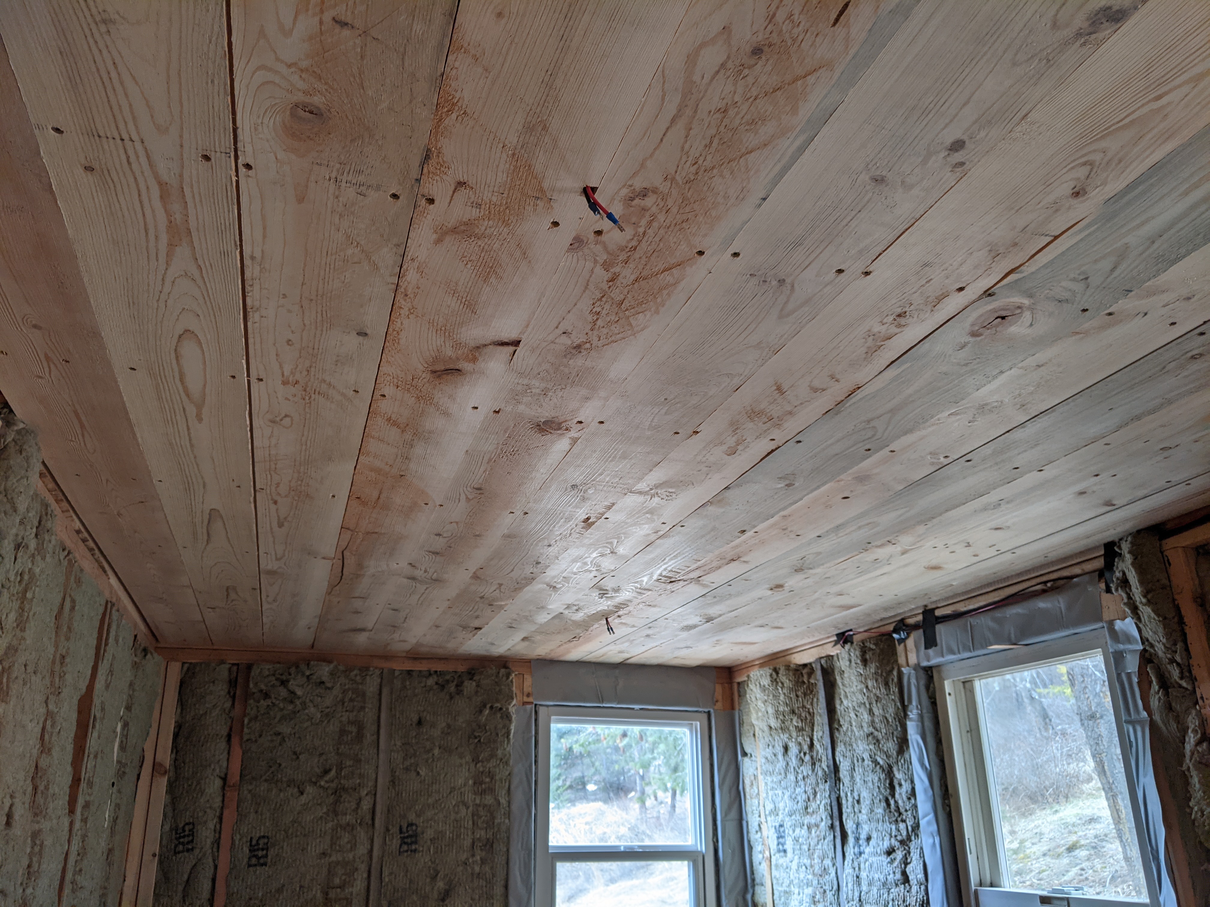 Daniel and I got the ceiling boards all planed on one side. We didn't plane them perfectly smooth to retain some of their inherent rusticity. π