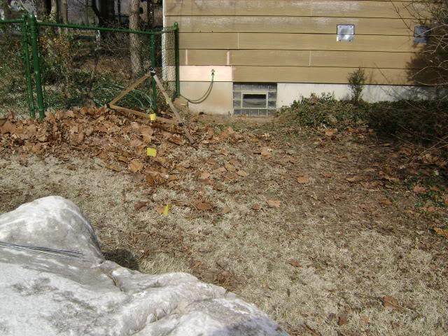 Did another DIY permie project today.  I did multiple searches of plans for a contour line tool with no luck, so I just hunkered down and started pieceing it together.  I used old wall lathe for the wood, screwed and taped into a solid triangle.  Then I wrapped a plumb-bob string around a screw at the top so it would hang just above the horizontal wood piece.  Then I used a 24" level to find a level spot on the floor in my house--took me 4 tries!  Placing the triangle contour line finding tool on that level spot, I marked a black line where the plumb bob dangled.  Now I can find contour lines.  The lengths of the legs or cross brace do not matter, or where the plumb bob is attached doesn't matter, but having a level surface when you mark your level line on the cross brace is important.  The second pic shows 4 points plotted, marking the edge of where I intend to install a retaining wall, below which will be a natural pond.  Tons of clay abound that low in the ground, so I will be harvesting for making a rocket mass stove later this year.