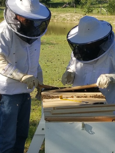 I have found that for the safety of my bees, I need to wear a hat when near the hive. I finally learned at 10 bees, that the curious, though not defensive guards can land in my long hair. Then they get tangled an can't get out. The poor babies get panicked, and BAM!! I am stung, and poor baby dies.![]()