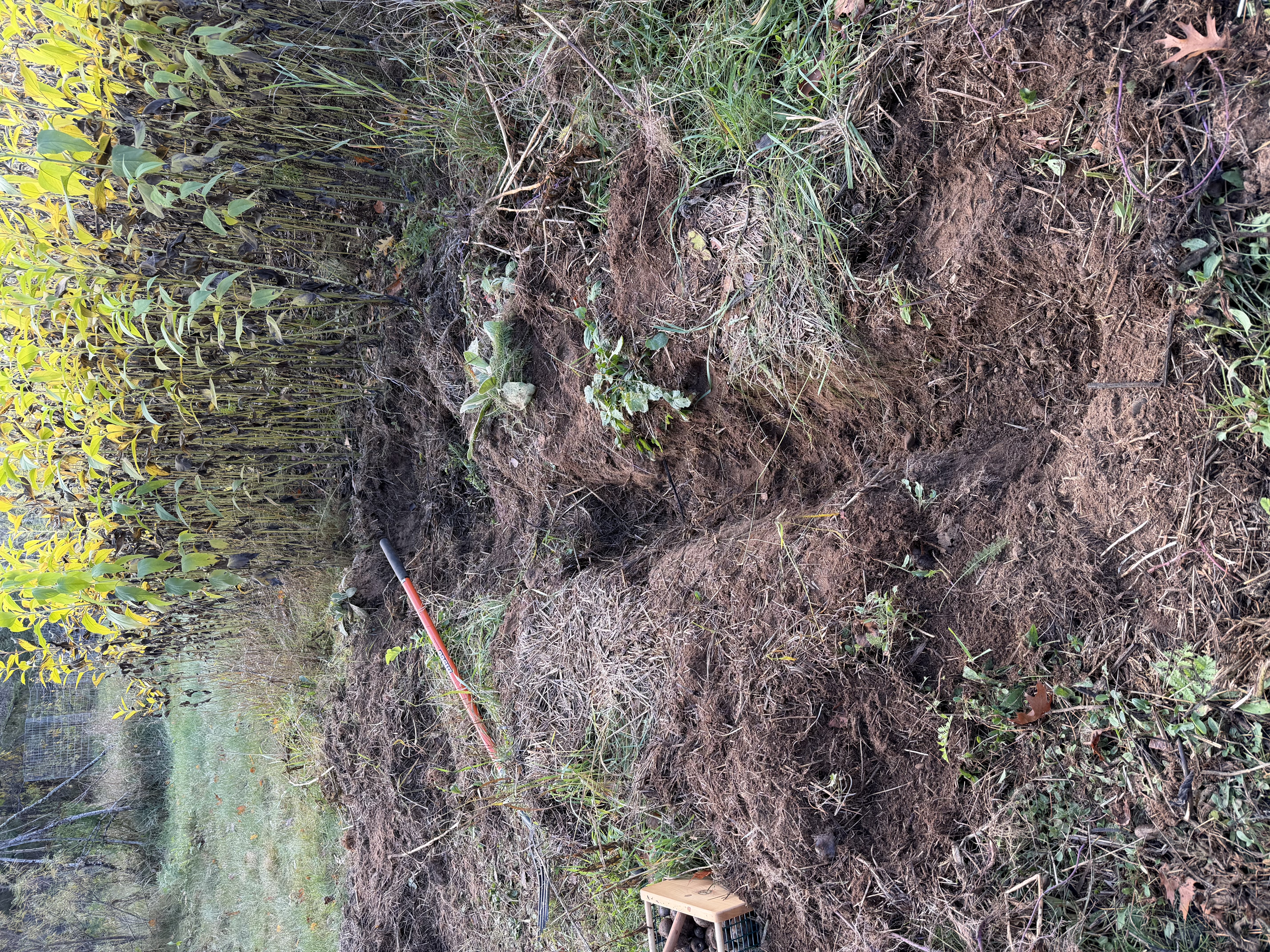 I’m slowly clearing a new patch. I think I’ll plant some potatoes there. Anyway I’m also thinking of trying planting extremely over-chitted potatoes sideways.