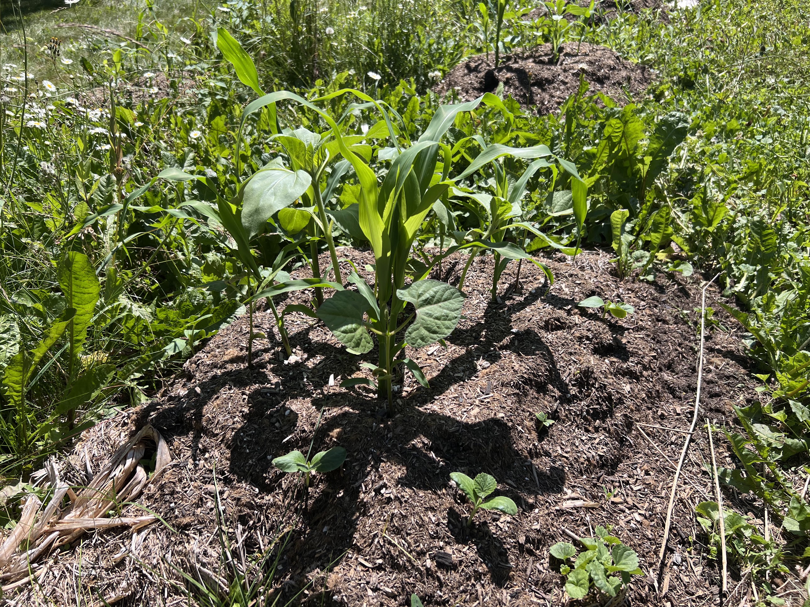 Christopher Weeks wrote:We start later than y'all and also I've had some injuries that made things slow and late. But here's what my three sisters (plus sunflower) looked like two days ago. Instead of preparing the field, I just put down ~3-4 foot squares of cardboard, a couple slices of hay on top of that, and either a bag of "organic raised-bed soil" from the big box or half a cart of home compost on top of that. Plant corn and sunflowers. When something is three inches tall, plant beans nearby and squash down the sides of the mound. We'll see if I get anything!