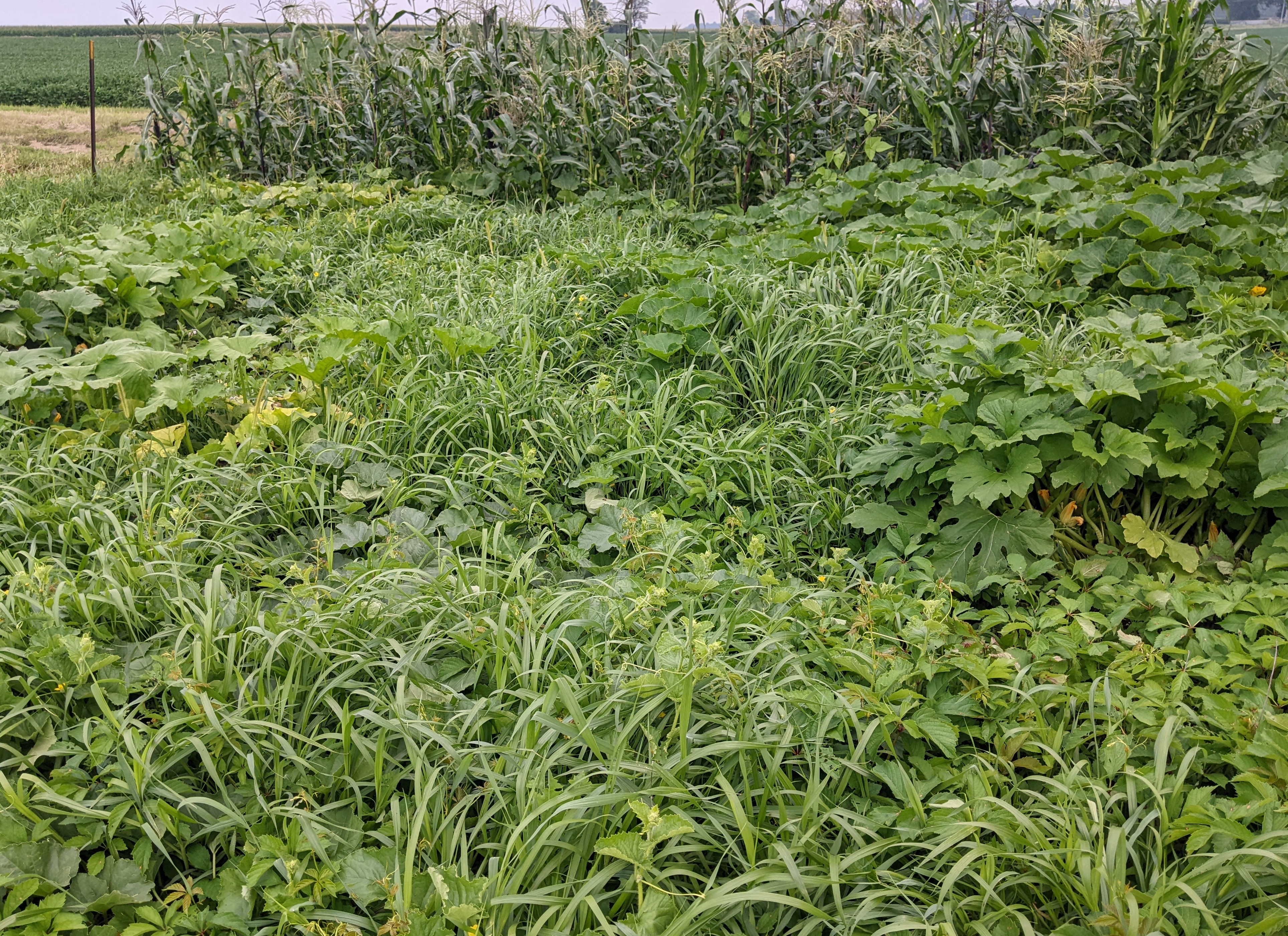 May Lotito wrote:Small maxima squashes have smaller leaves and they can be shaded out by more vigorous pepo and moschata when planted together. Plants are doing well in general. However, it has been hot and dry and I find various sap suckers are moving in.