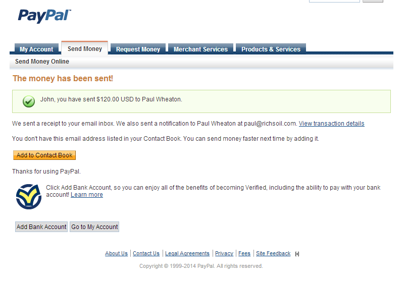 Normally I get an email instantly. But no email this time. But logging into paypal, there it is. But no address is listed.