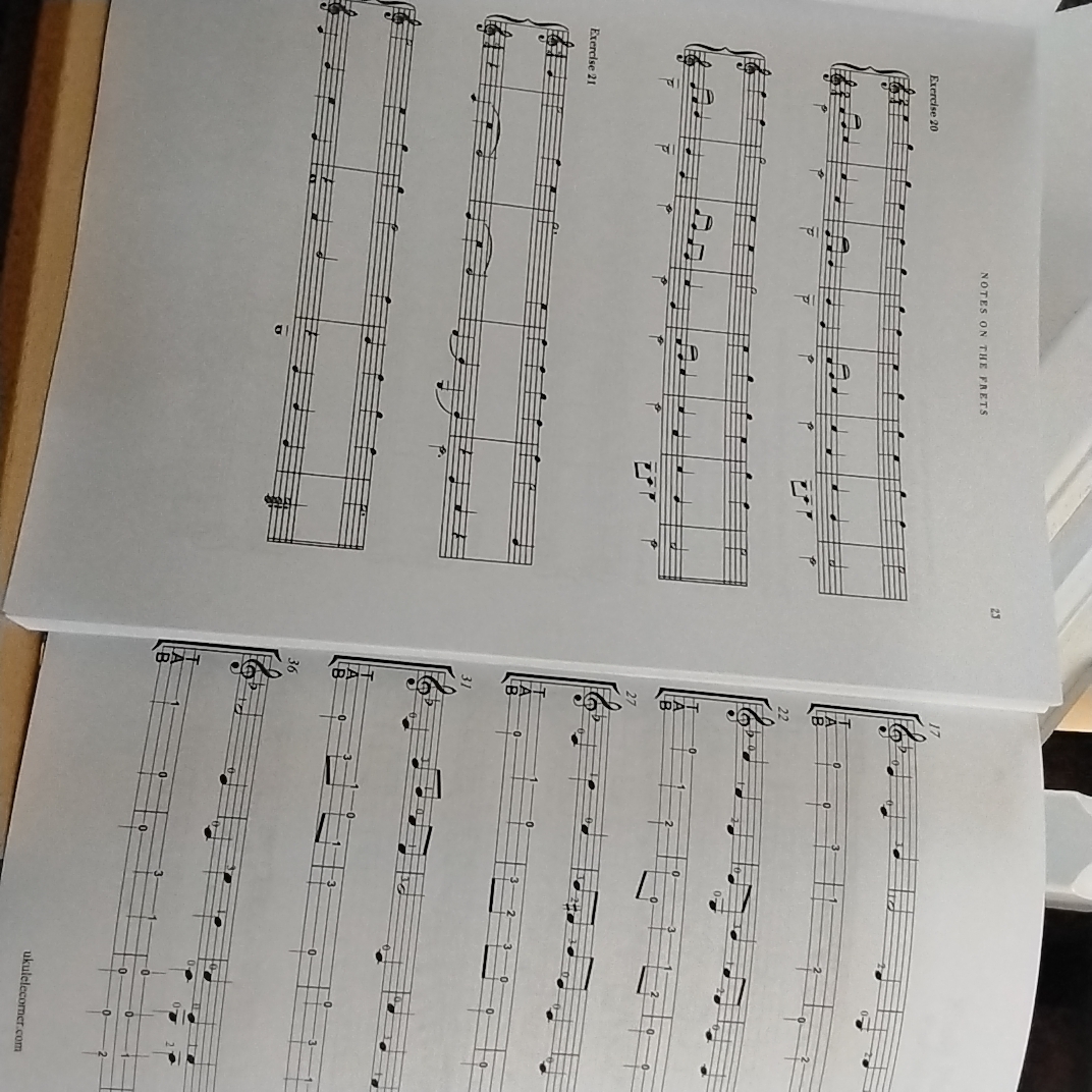 Started exercises 23 and 24 today. The focus is on string 2 and the first three frets. But it adds in stuff we learned from the previous lesson like open string 3 and the first string frets.