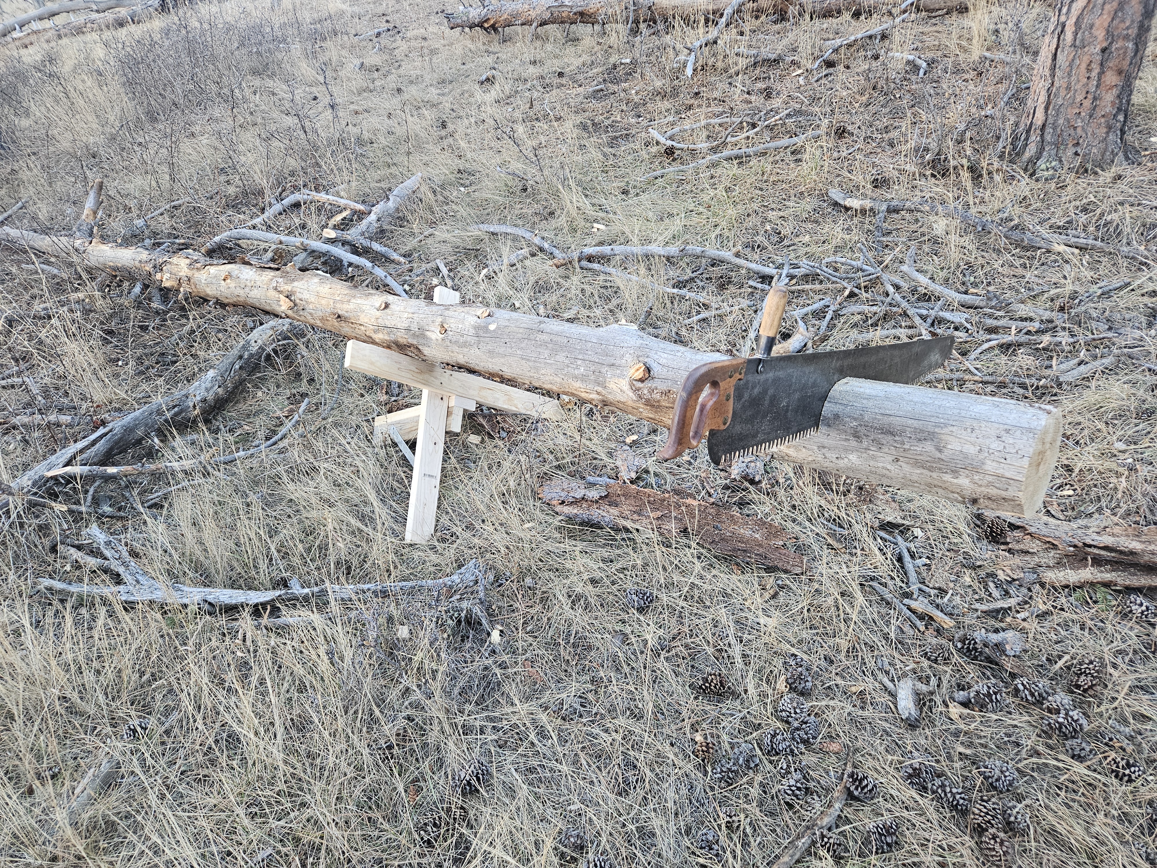 I know that this is an old post but I just wanted to thank everyone who posted for the ideas, which are surprisingly scarce elsewhere on the interwebs. I've also gotten ideas from Mr. Chickadee on youtube and Jim Thode's video's where he's single bucking much biger PNW timber than I come across in the Colorado rockies. I've picked up a few one man crosscut and bucksaws over the past couple of years and recently got out to cut some firewood, but realized beforehand the importance of proper workholding.