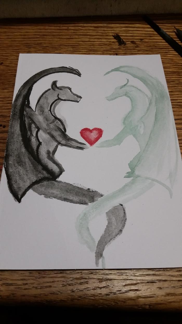 I attached both my "color test" dragons, and then the final dragon painting. (I didn't want to paint my sketch until I was sure the paints looked good together, and that I had relatively good control of the paint!)
