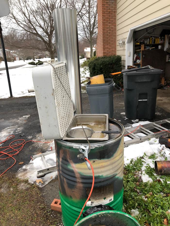 8 inch rocket stove with a fan to increase evaporation give me 3 to 4 gallons per hour with one deep chaffeing tray. I built it out of stove pipe and  perlite for a test run and burned it out in one season of use.