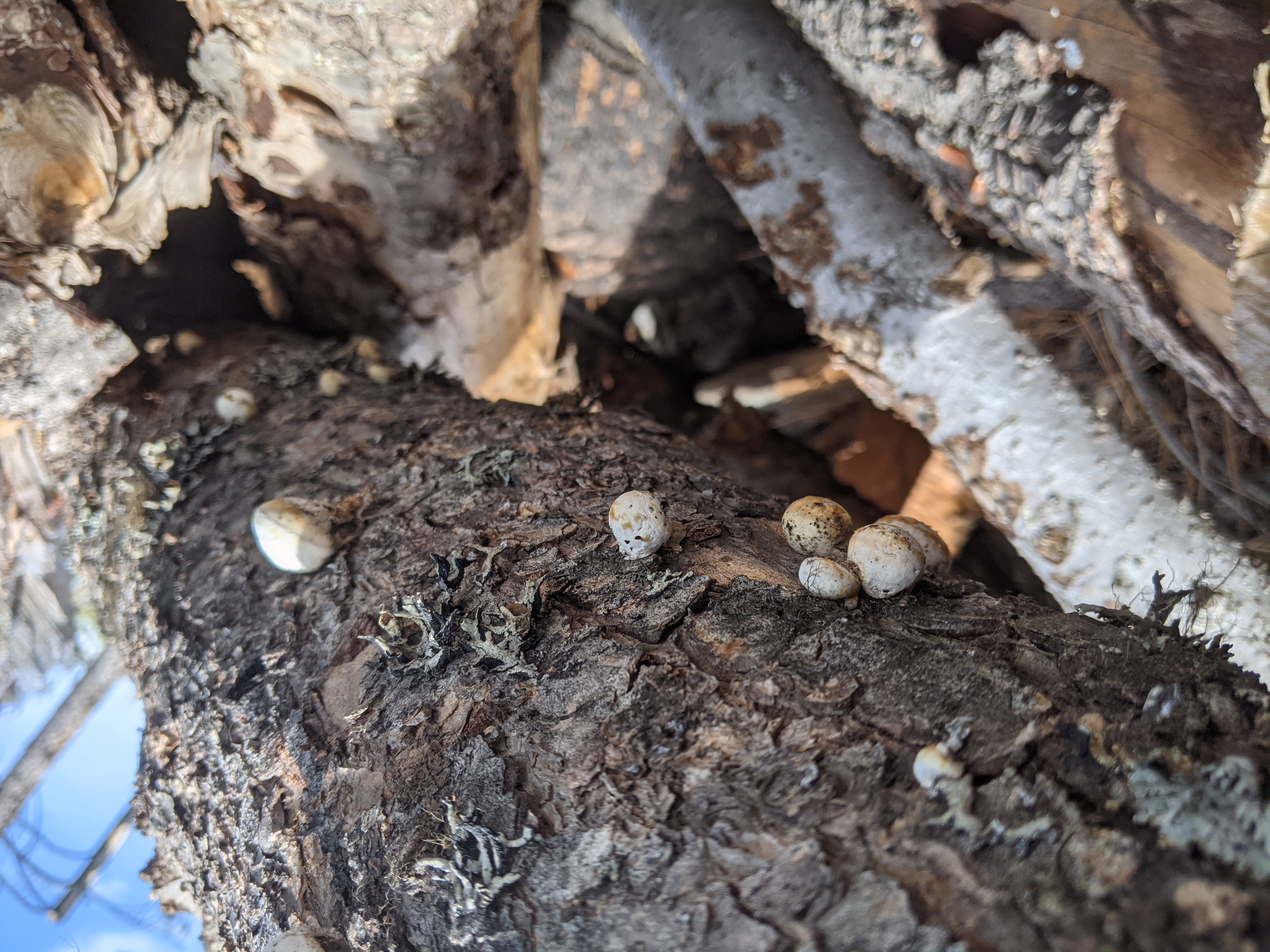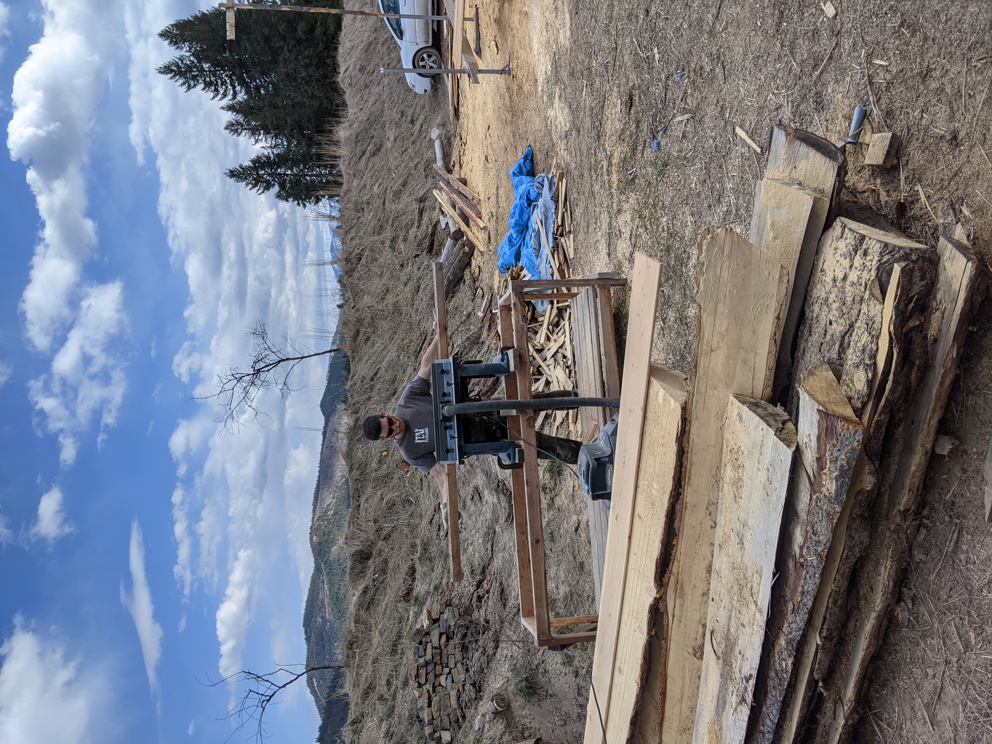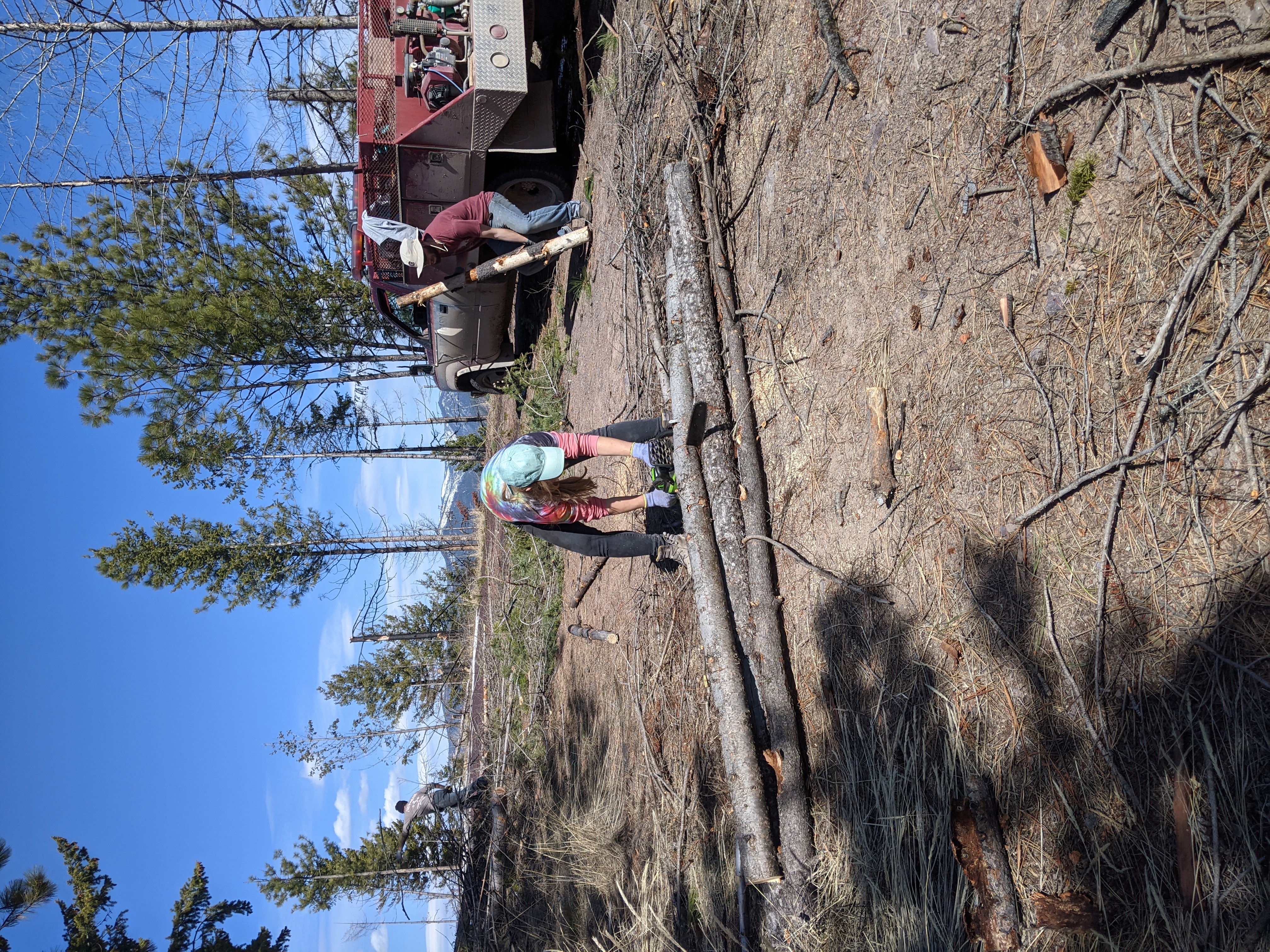 Kyle had identified a good pile of dry, stacked (if you can call it that) wood. It was on a bit of a steep incline, so I carefully began picking my way through it and pulling out logs I could manage to get back up the hill. Kyle came over and jumped in to help grab more. Daniel joined us. Erica came over with a chainsaw to start cutting it to length. It was a hustle.