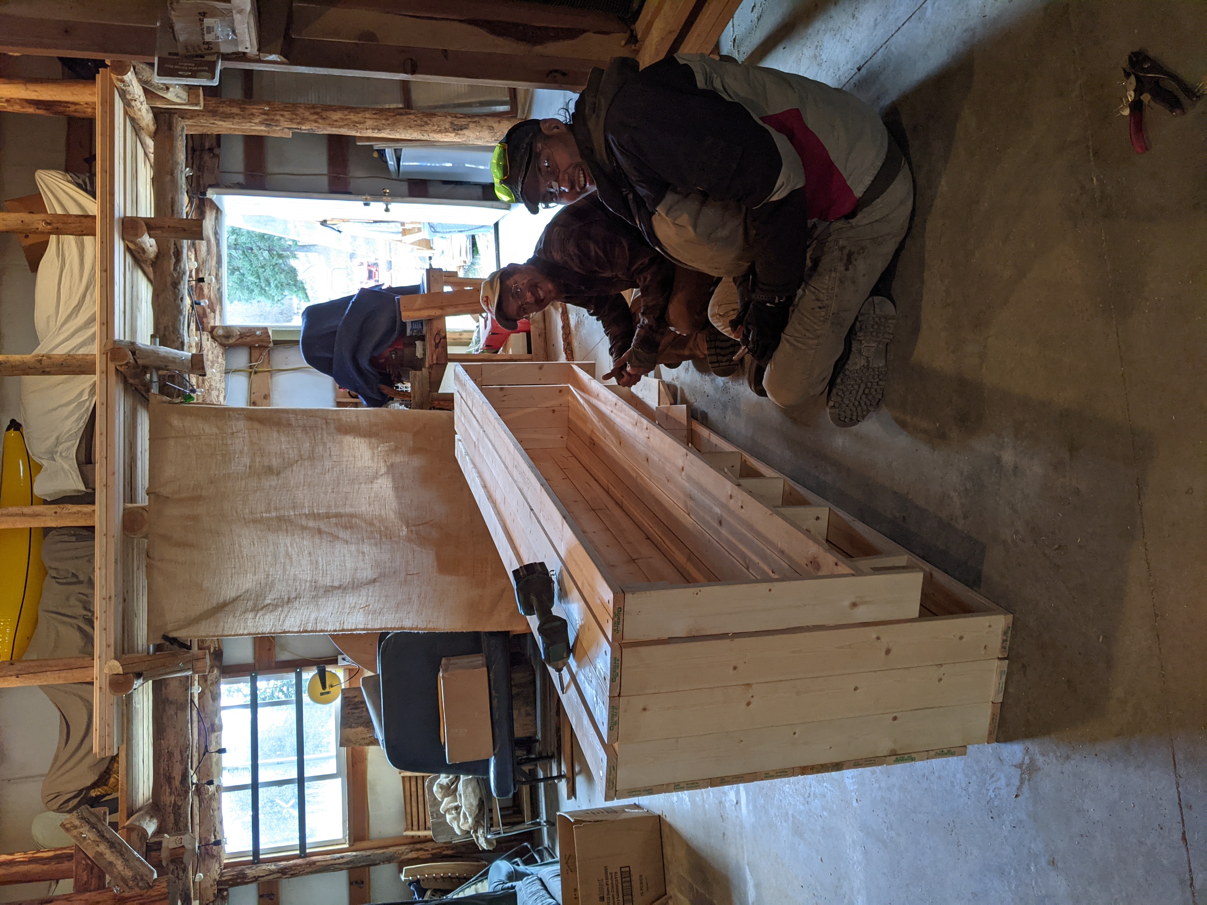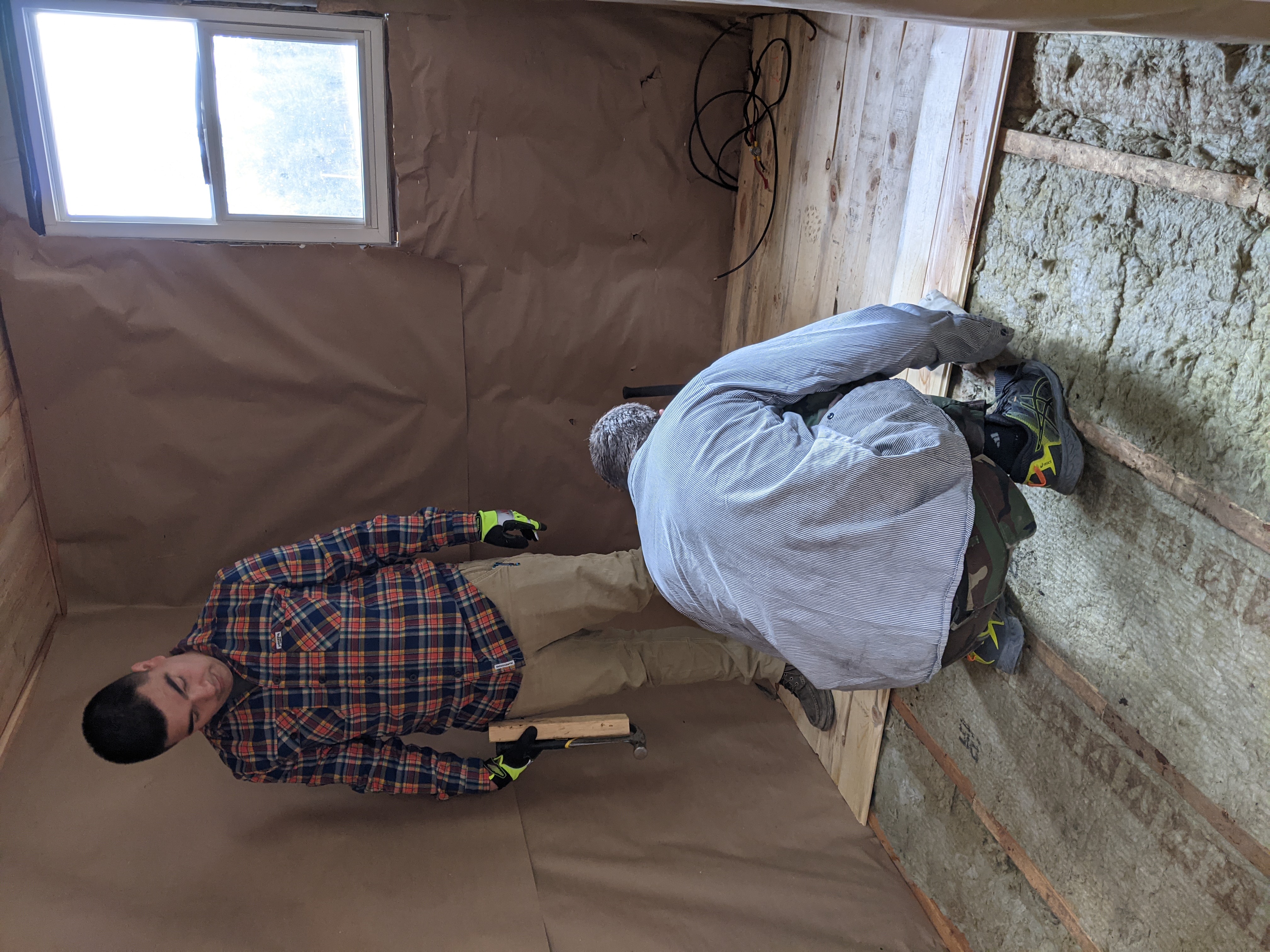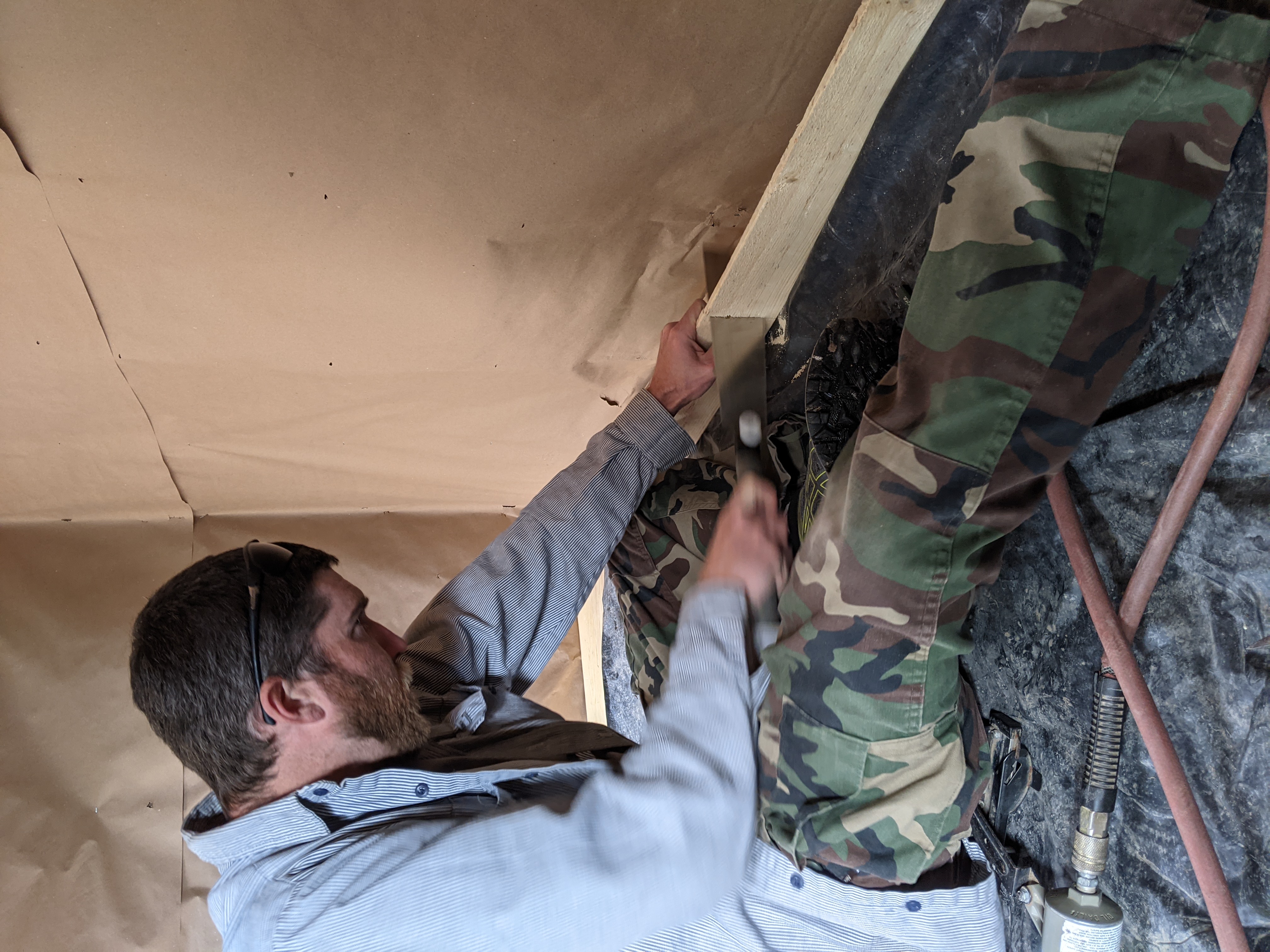 Kyle had identified a good pile of dry, stacked (if you can call it that) wood. It was on a bit of a steep incline, so I carefully began picking my way through it and pulling out logs I could manage to get back up the hill. Kyle came over and jumped in to help grab more. Daniel joined us. Erica came over with a chainsaw to start cutting it to length. It was a hustle.