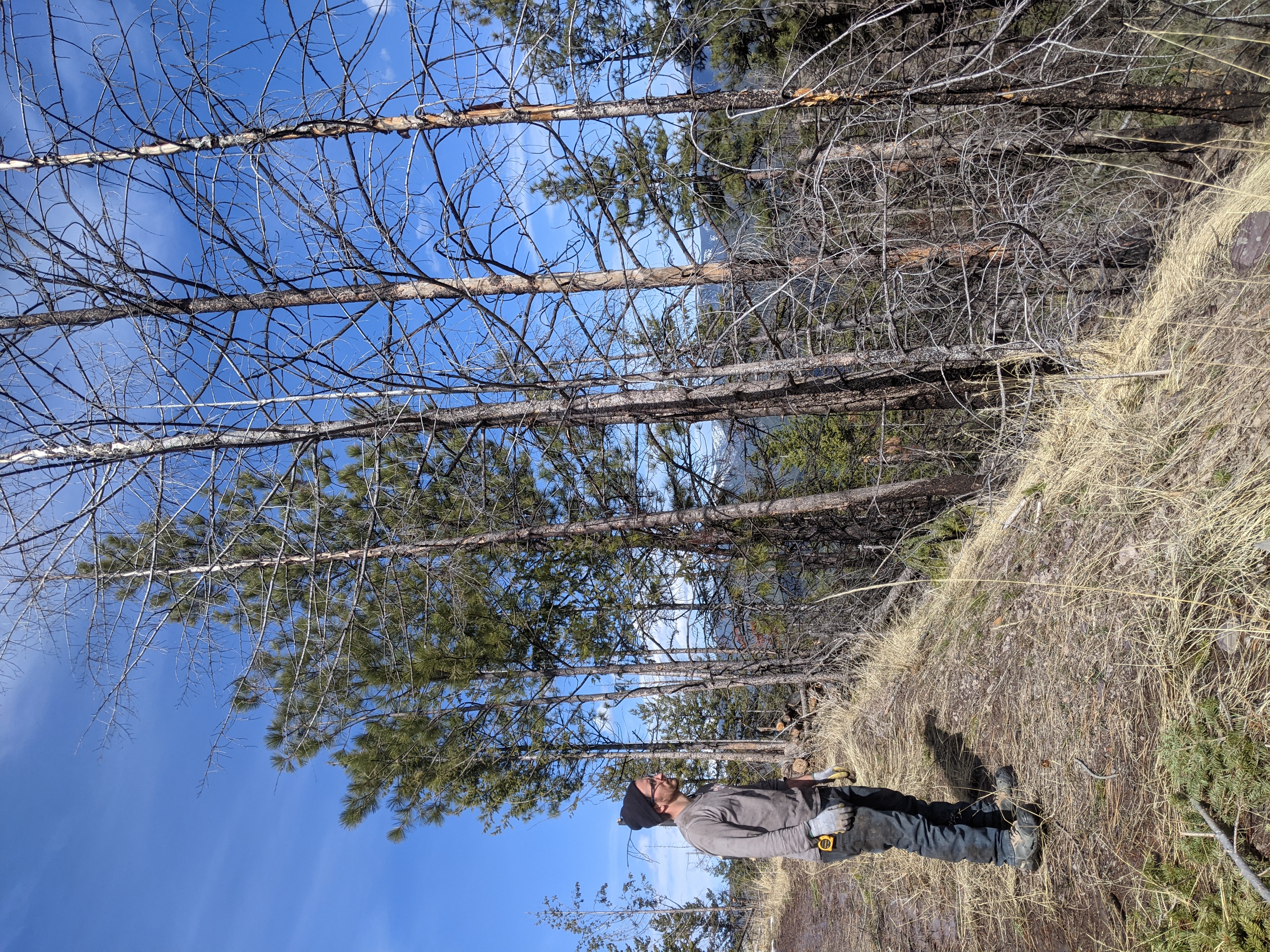 Kyle or Daniel mentioned to put snow on it for the swelling, so I packed some snow onto it afterward. Too cold, so Daniel suggested using my bandana to wrap the snow then apply it. That helped a bit. And by doing that I was able to mostly one-handed continue helping them pull the logs to the top of the hill, then later help everyone load it into the trailer.
