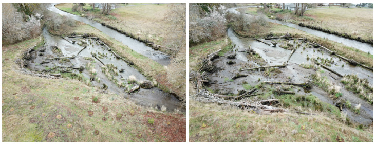 The second project I want to share is a clear example of the function school of thought. The organization I work for bought a golf course on the Puget Sound and decided to restore it to a more natural state. This property had been so dramatically changed that really it was not possible to restore to the structure school of thought standards. There was also a earthen tidal dike blocking the tides from coming in and the stream flowing through the property had been restricted to one narrow channel.