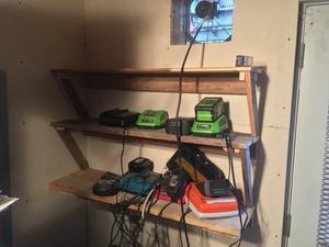We built a new shelf for charged batteries in the The Shop, so that it hopefully stays more organized.