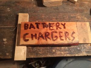 I made some signs to help keep things organized in The Shop. This me working on the charged batteries sign.
