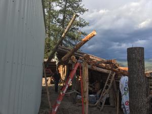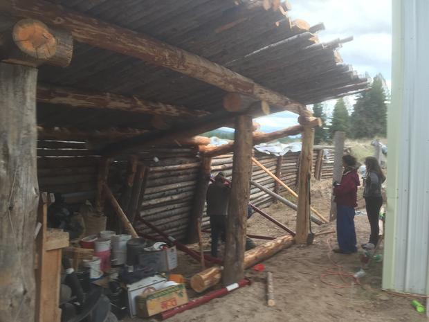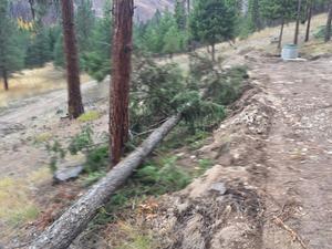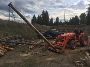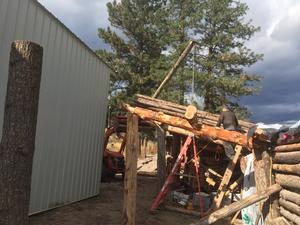 We moved and organized lumber that we moved out of the way, so that the tractor with a gin pole can get in for Bermshed repairs.