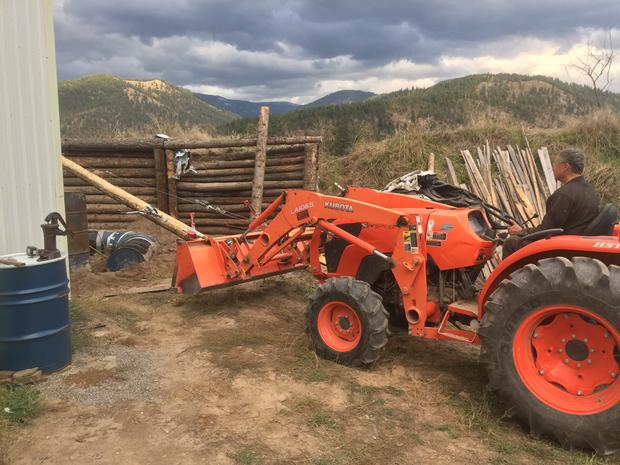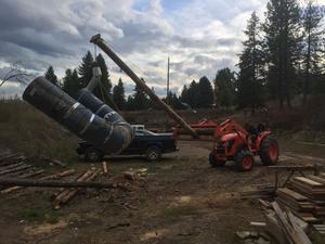 The tractor with the gin pole is moving in to take out the bun warmer.