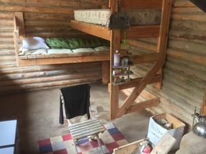 This is one of the beams getting moved into place on the Bermshed at Basecamp. This was done with our new gin pole design, that is a slightly shorter gin pole, about 16 feet instead of 21 feet, and it uses just one pole instead of two.
