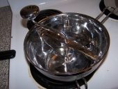 I just went for it and brewed something up. There's a great contraption called a 'steamer-juicer', a three compartment stovetop deal that has a spout that eventually fills up with juice. We threw in the berries whole, no pitting, with stems, and out comes juice.