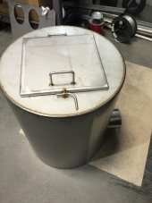 Yes it is sitting on its back, there is the gasket on the door(pics were taken just after weld process), and the legs have been built for a while. The inside pic shows the spark arrester which is open on all sides( just blocks straight travel to the exhaust) and is also 10 gauge stainless. I tried to upload a video of it during its first burn but the site wouldn't let me upload .mov files
