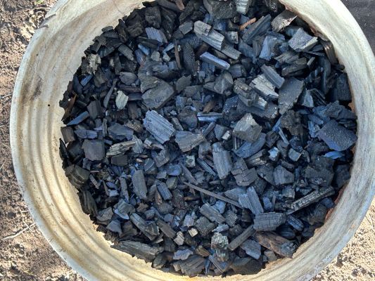 I was outside today crunching some charcoal I made and stored for a few years. I crush it and use it periodically. I started with 160 pounds of it, so it will last me a while.