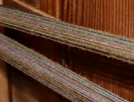 I've finally started on a project! My idea is to weave a series of four dishtowels with a nature motif in seasonal color schemes.