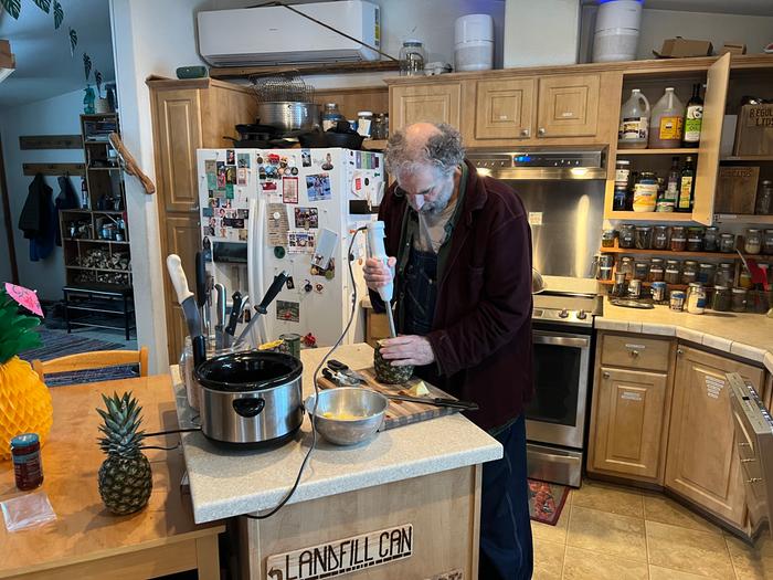 Dez was as he is so often, "grateful for so many things" .. including "pina colada day.. we put pineapple on pizzas, got the room up to 85 degrees to make the cold pineapple drink taste extra refreshing.. the dock lighting got some love too.."